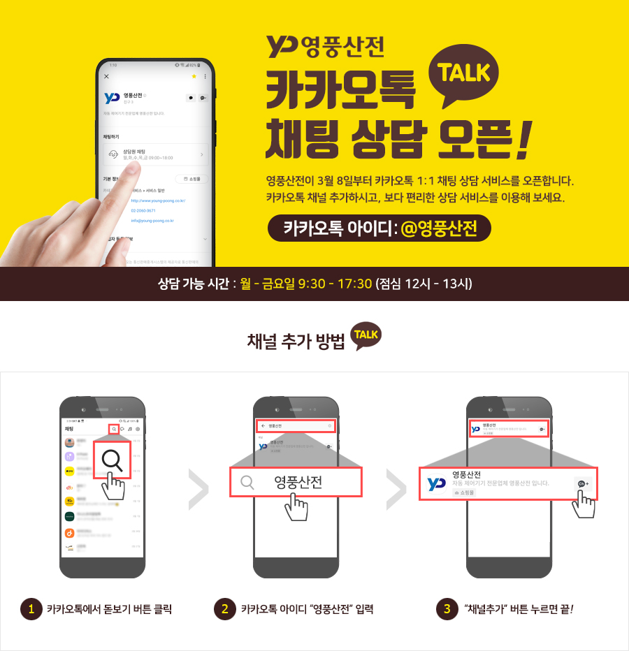¿µÇ³»êÀüÀÌ 3¿ù 8ÀϺÎÅÍ Ä«Ä«¿ÀÅå 1:1 äÆÃ »ó´ã ¼ºñ½º¸¦ ¿ÀÇÂÇÕ´Ï´Ù.